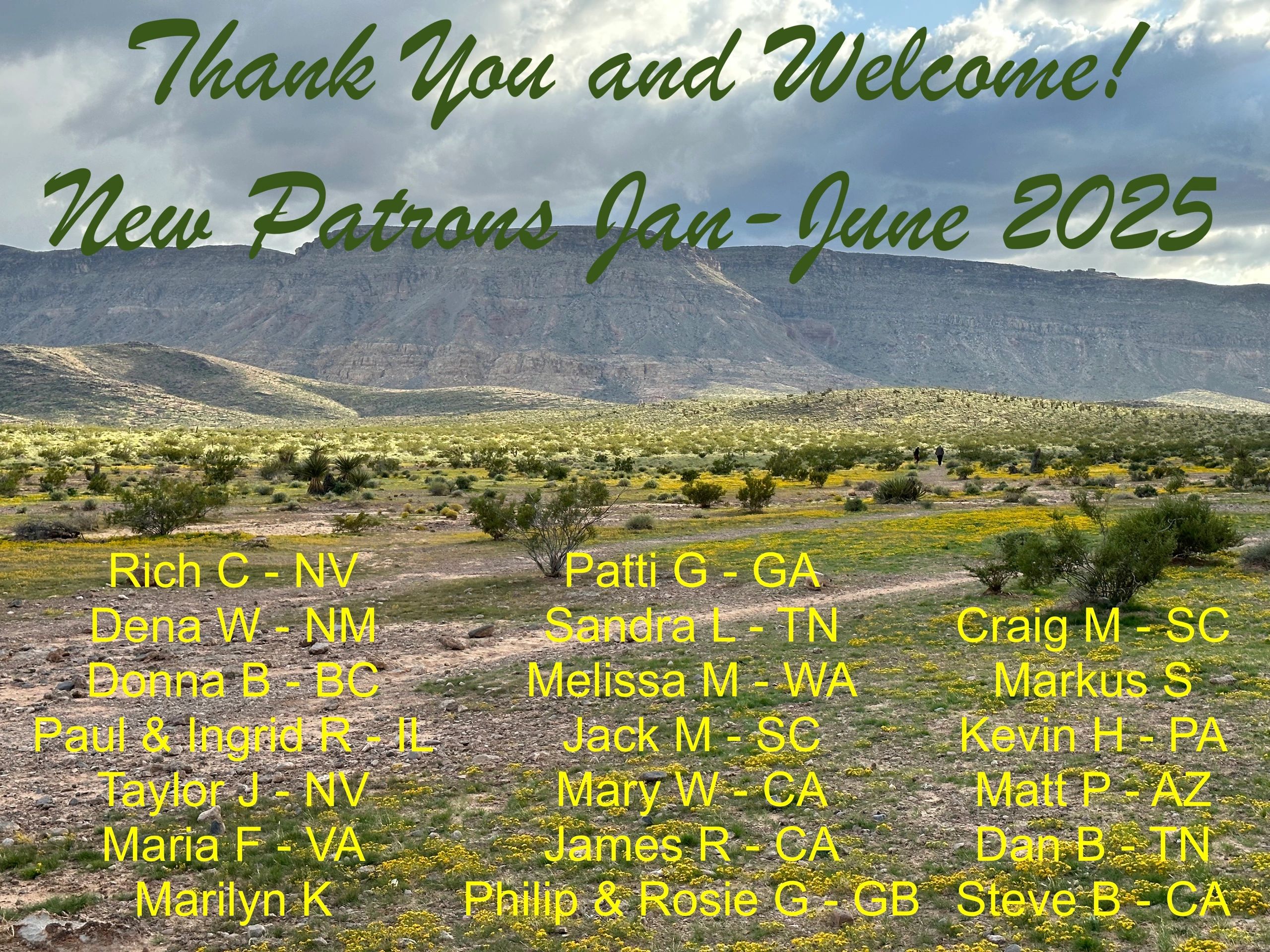 Paula and I want to thank each and every one of the fine folks listed here, who have joined our Patreon community in the first six months of 2025, and chosen to support our endeavors with a monthly "tip". We are ever grateful! (And, always grateful to the ones who joined - and stayed! - before this year.)