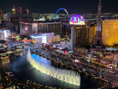 Scott sent us this gorgeous photo, taken in April 2024, and we just want to feature it again in case you missed it on our website before. It was taken from one of the higher balconies at the Cosmopolitan, and it shows not only the Fountains of Bellagio, but also the Eiffel Tower at Paris, the High Roller, AND the Sphere! What a great photo!