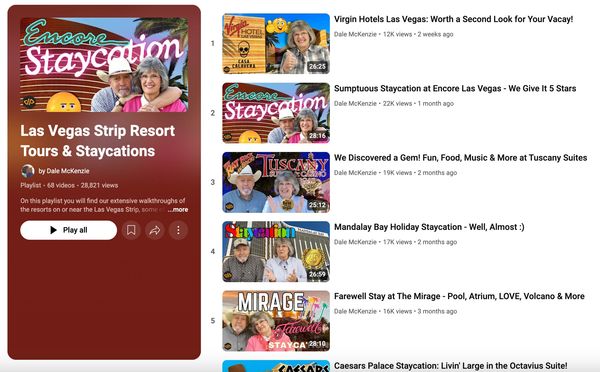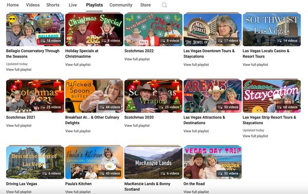One of the most helpful features of a YouTube channel is the Playlist - a collection of related videos grouped together. Las Vegas Inside & Out has a LOT of these - as you can see above.