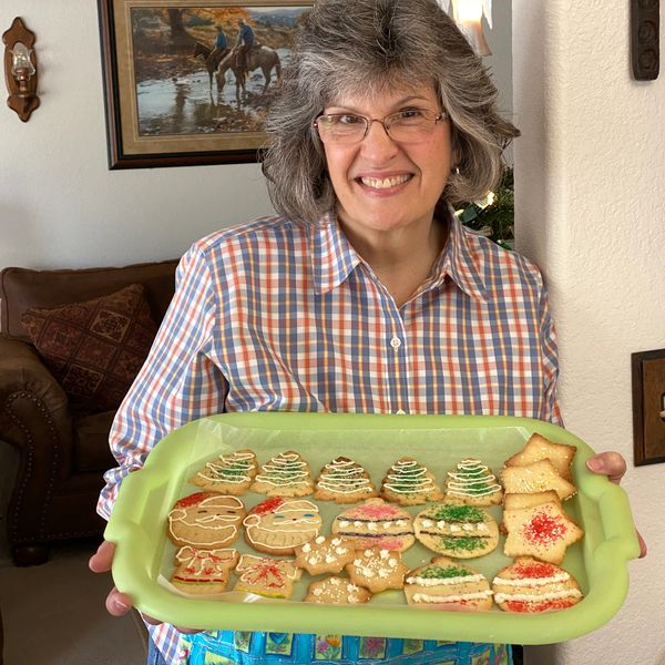This one is from 5 years ago - December 2020, and our original kitchen near North Las Vegas. Paula tackles 3 different treats, pretty much simultaneously: Christmas Ribbon Salad (with colorful Jell-O stripes), Dove of Peace cupcakes, and Big Soft Ginger Cookies. Three winners!